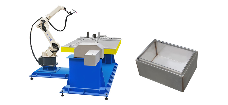 1O sistema completo de robôs de solda inclui um conjunto de robôs HS-R6-08 de comprimento de braço de 1,4 m, um conjunto de máquinas de solda TIG de 400 A, um conjunto de armas de solda automática anti-colisão,2 conjuntos de posicionadores de rotação vertical de um eixoA soldagem automática é efectuada por um soldador robótico MIG de seis eixos.Os cilindros ou pinças rápidas são usados para fixar a posição do produto com o princípio da alavanca para garantir os requisitos de posicionamento de soldagem automática do robôDe acordo com as exigências da eficiência de produção, são concebidos dois conjuntos de posicionadores,uma para o carregamento e descarregamento da peça de trabalho, e o outro para soldagem.